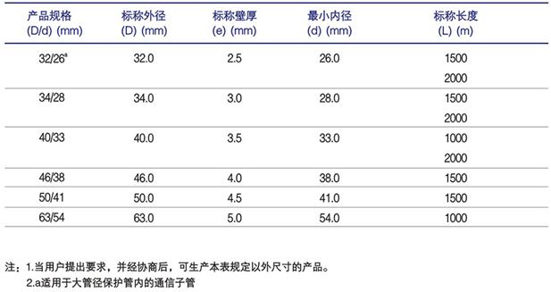 HDPE阻燃硅芯管規(guī)格尺寸